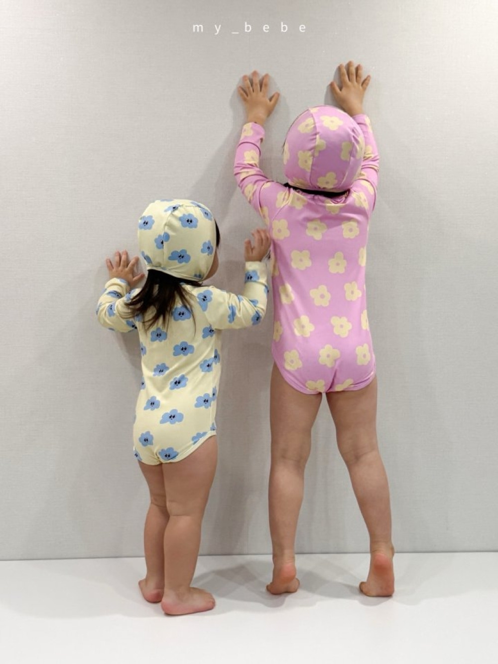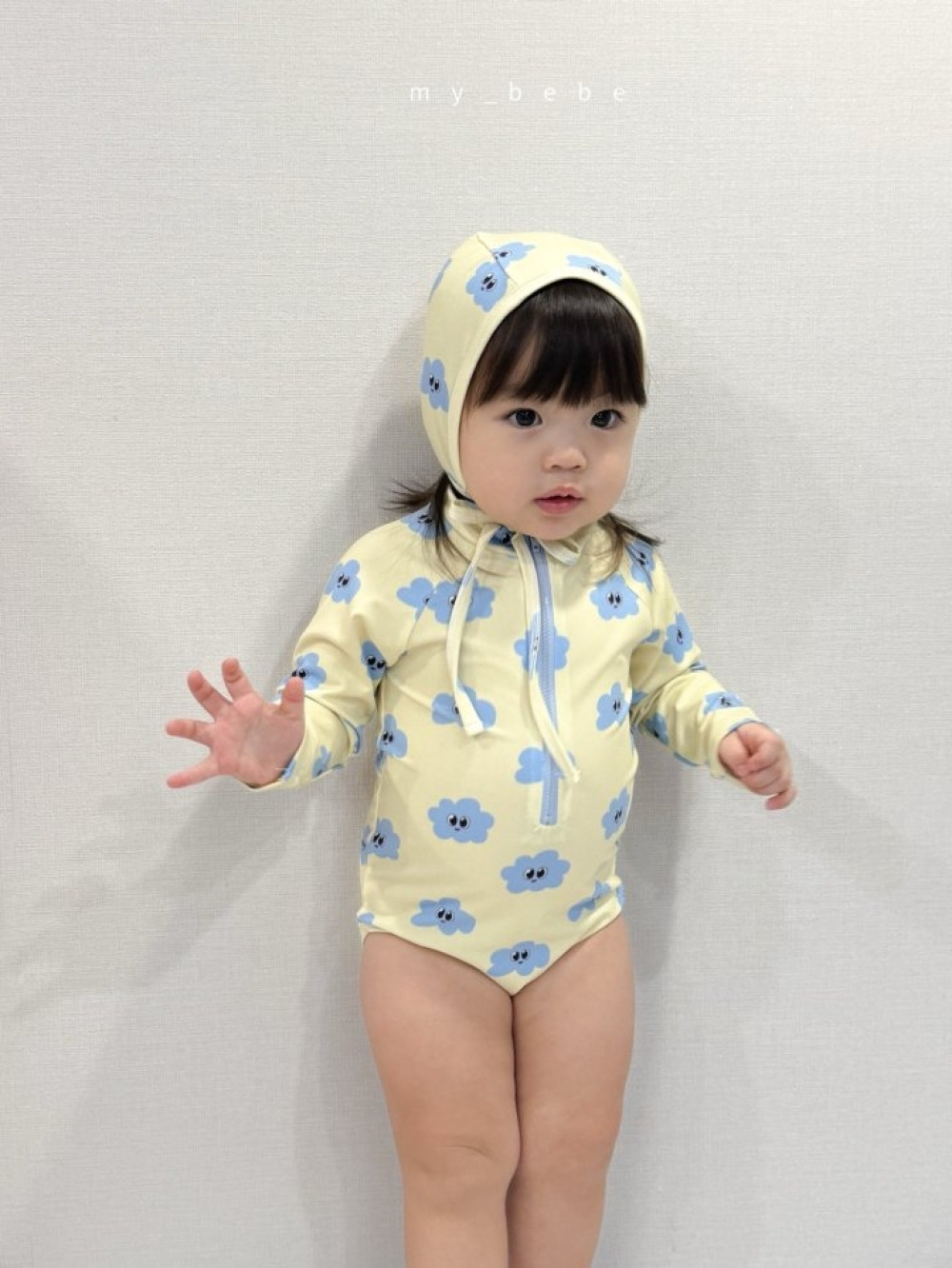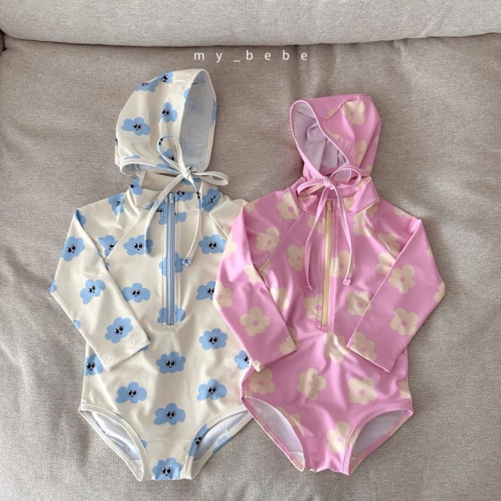 26夏【Mybebe】夏日小花與雲朵防曬泳裝+泳帽 (2色)